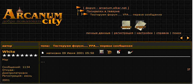 White и Mr Mingan засели за работу и выстроили сайт, просто сайт, посвященный Арканум. После чего Wanderer высказал идею о создании на нем Города, в котором можно было бы организовать разнообразную городскую жизнь и соответствующие мероприятия. Вот так и возник Арканум-Сити, чье появление на свет было ознаменовано следующим анонсом: