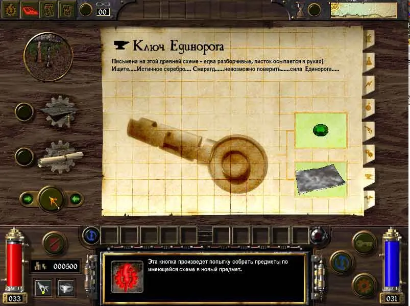 - {879}{[Письмена на этой древней схеме — едва разборчивые, листок осыпается в руках] Ищите....Истинное серебро.... Смарагд......невозможно поверить......сила Единорога....}